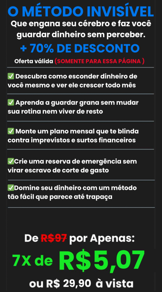 Reprograme sua mente pra parar de sabotar o bolso e começar a pensar como quem faz dinheiro crescer.